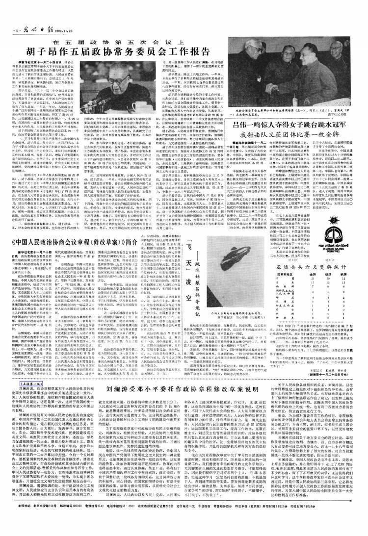 1982年11月25日《光明日报》刊登《吕伟一鸣惊人夺得女子跳台跳水冠军》《“飞天”凌空》两文