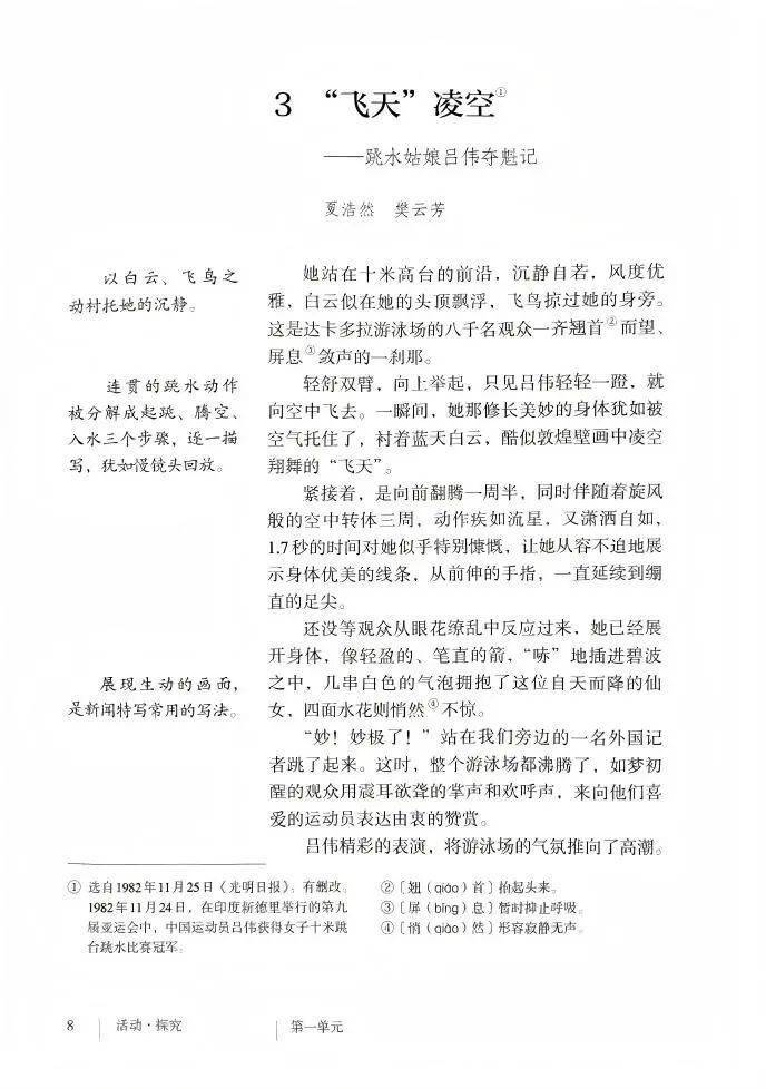 《“飞天”凌空》入选人教版语文八年级上册